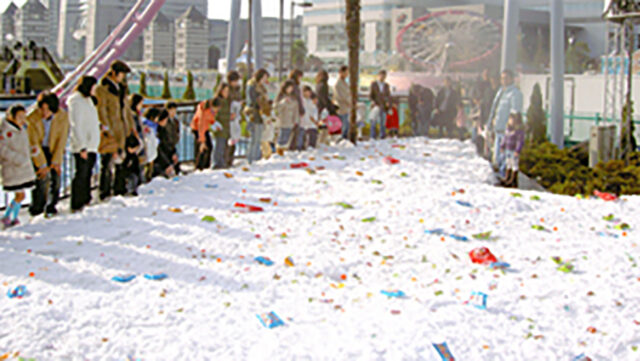 降雪と同時に大歓声が沸き起こります!こどもたちは大はしゃぎです。