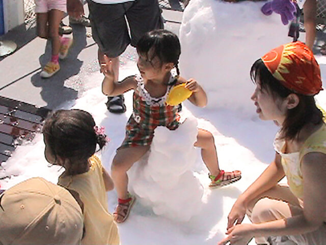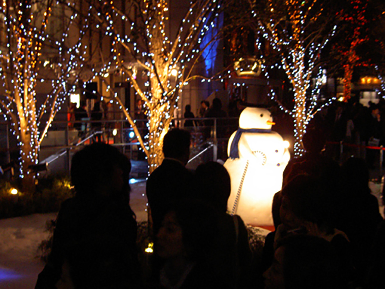 量販店では定番の雪遊びが主流ですが、大型商業ビルではエントランスにスノーマンやかまくら等の造形物や雪化粧を施すクライアント様もいらっしゃいます。